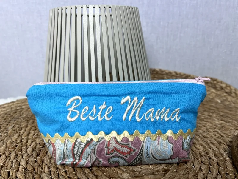 Diese liebevoll, handgefertigte und bestickte Kosmetiktasche ist mehr als nur ein praktischer Begleiter - sie ist ein ganz persönliches Lieblingsstück und ein absolutes Unikat !