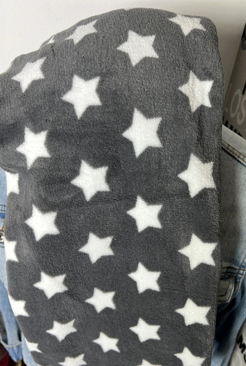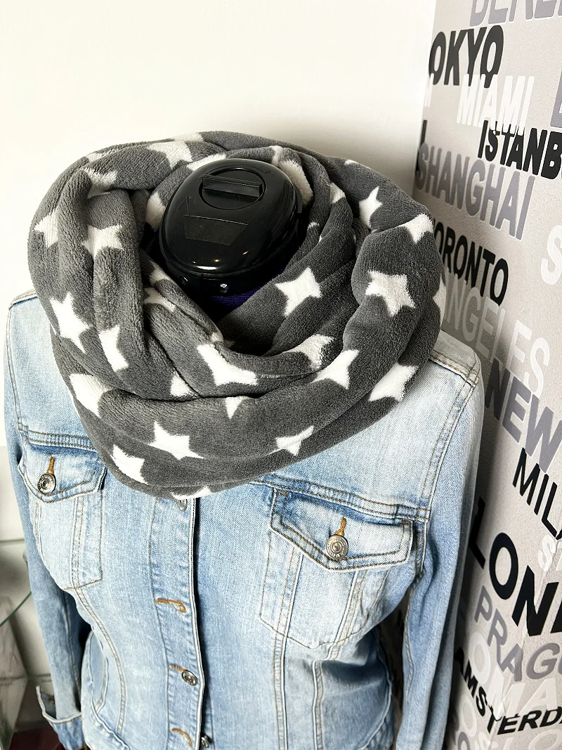 Grauer Loop-Schal aus Fleece mit weißenSternen - Kuschelig & stilvolldurch kalte Tage