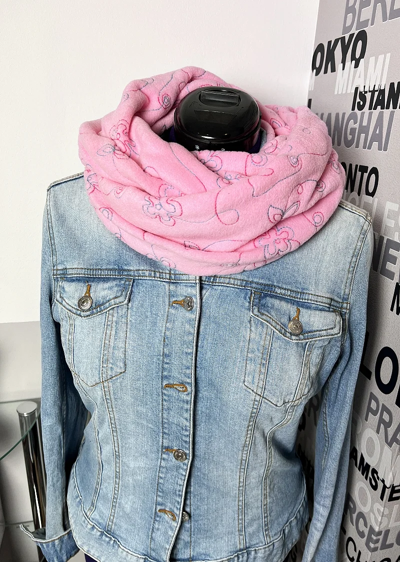 Rosa Loop-Schal aus Fleece mit Floraler Bestickung - Kuschelig & stilvolldurch kalte Tage