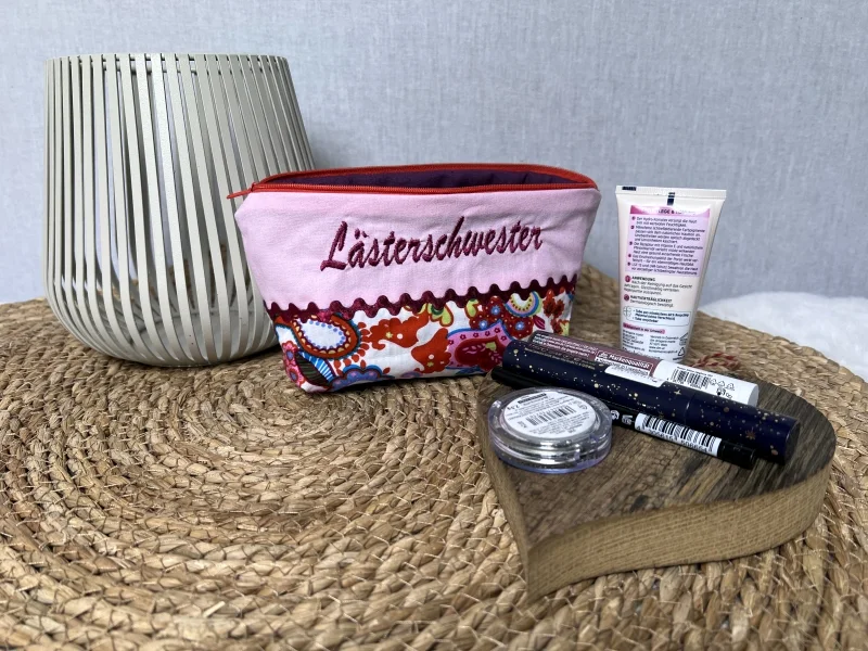 Diese liebevoll, handgefertigte und bestickte Kosmetiktasche ist mehr als nur ein praktischer Begleiter - sie ist ein ganz persönliches Lieblingsstück und ein absolutes Unikat !