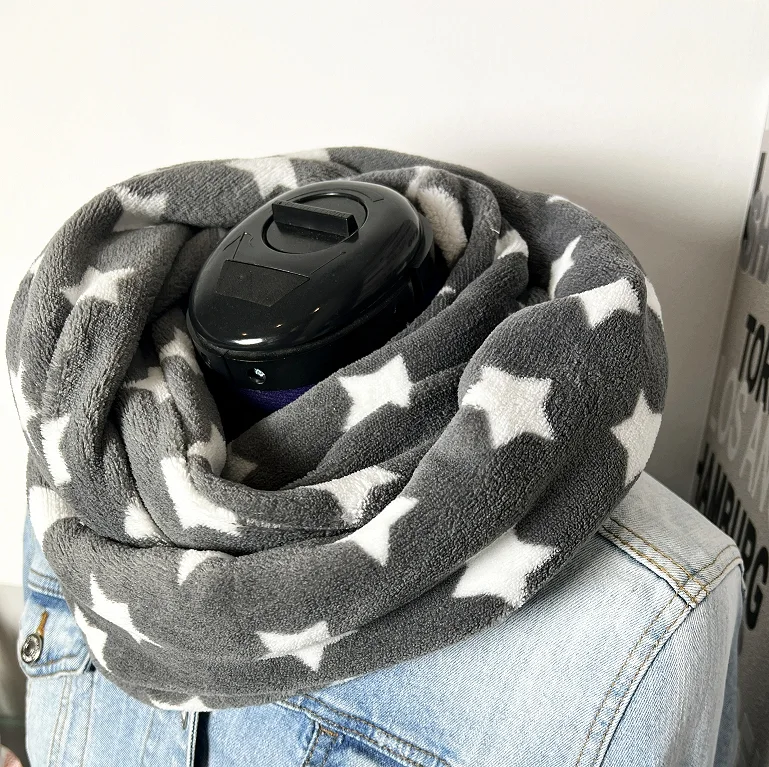 Grauer Loop-Schal aus Fleece mit weißenSternen - Kuschelig & stilvolldurch kalte Tage