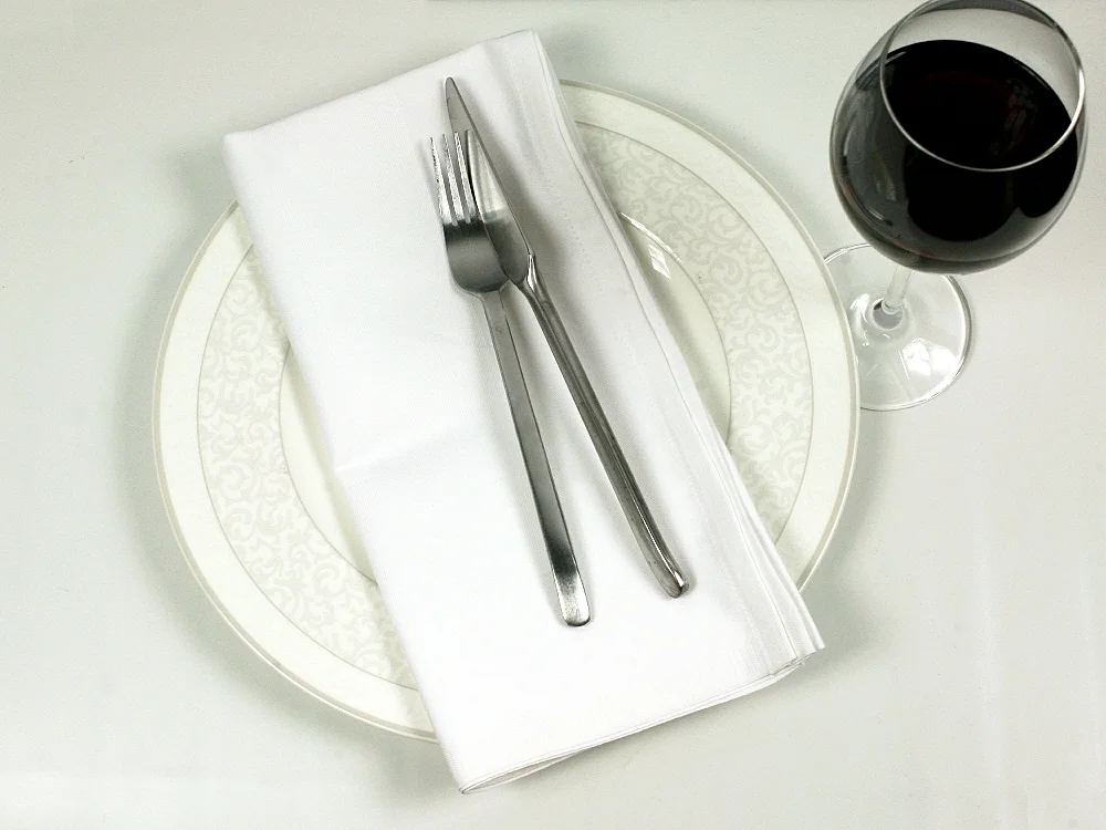 Sie erhalten weiße Servietten aus Baumwolle in einer Hotelqualität.